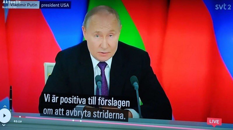 Σουηδικό τηλεοπτικό δίκτυο έγραψε κατά λάθος τον τίτλο του προέδρου της Ρωσικής Ομοσπονδίας Βλαντιμίρ Πούτιν ως Πρόεδρο των Ηνωμένων Πολιτειών.