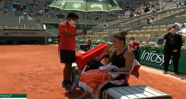 Στη διάρκεια μιας διακοπής του προημιτελικού με την Ίγκα Σβιόντεκ, η 25χρονη τενίστρια είδε το παιδί που της κρατούσε την ομπρέλα για να την προστατεύει από τον ήλιο κουρασμένο.