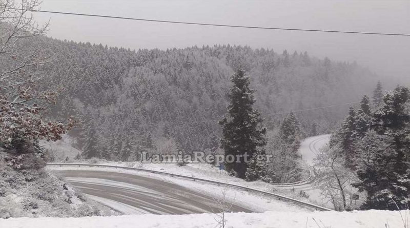 Έντονες χιονοπτώσεις σημειώθηκαν το βράδυ της Δευτέρας (24/12) σε όλα τα ορεινά της Φθιώτιδας, Φωκίδας και Ευρυτανίας. Μάλιστα, από τις 5 το πρωί τα φαινόμενα κατέβηκαν αρκετά χαμηλότερα, με χιόνι και σε κατοικημένες περιοχές. Ο δρόμος Λαμίας – Καρπενησίου, ήταν από τα πρώτα σημεία που ντύθηκαν στα λευκά, με τα συνεργεία της Περιφέρειας να μην τον αφήνουν στιγμή, με αποτέλεσμα ακόμη και πριν χαράξει να μη χρειάζονται αλυσίδες για τη διέλευσή του, σύμφωνα με το lamiareport.gr.