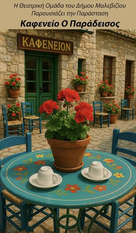 Στη Δαμάστα θα βρεθεί την Τετάρτη 13 Αυγούστου η Θεατρική Ομάδα του Δήμου Μαλεβιζίου, για να παρουσιάσει τη νέα της παράσταση με τίτλο «Καφενείο ο Παράδεισος».