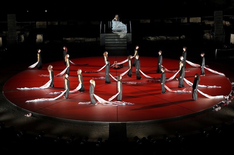 Η εμβληματική Ορέστεια του Αισχύλου σε σκηνοθεσία Θεόδωρου Τερζόπουλου, στην πρώτη συνεργασία του διεθνώς καταξιωμένου Έλληνα σκηνοθέτη και δασκάλου με το Εθνικό Θέατρο, αποτελεί μία από τις σπουδαιότερες στιγμές στην πρόσφατη ιστορία του ελληνικού θεάτρου. Μετά τη θριαμβευτική της πορεία, η παράσταση επιστρέφει σε επιλεγμένους σταθμούς στην Ελλάδα και το εξωτερικό, ενώ στις 22 & 23 Αυγούστου ολοκληρώνει τον φετινό επιδαύριο κύκλο του Φεστιβάλ στο Αρχαίο Θέατρο Επιδαύρου.