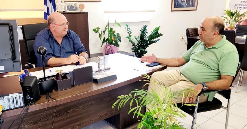 Στα γραφεία της Πρωτοβάθμιας Εκπαίδευσης Ηρακλείου πραγματοποιήθηκε σήμερα, 30 Αυγούστου 2023, συνάντηση εργασίας ανάμεσα στον Διευθυντή κ. Μπελαδάκη Εμμανουήλ και τον Γενικό Διευθυντή του Κ.Τ.Ε.Λ. Ηρακλείου-Λασιθίου κ. Χαλεπάκη Γιώργο. Η συνάντηση αφορούσε σε θέματα μεταφοράς όλων των μαθητών της Πρωτοβάθμιας Εκπαίδευσης Ηρακλείου που πληρούν τα κριτήρια βάση της σχετικής εγκυκλίου.