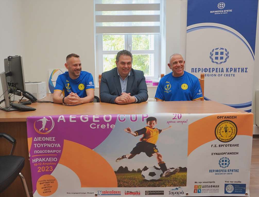 Ο υπεύθυνος οργάνωσης του AEGEO CUP, Καλπακίδης Κώστας επεσήμανε: «Την Δευτέρα 10 Απριλίου αρχίζει το AEGEO CUP, ένα τουρνουά παιδικού ποδοσφαίρου που διοργανώνει κάθε χρόνο Μεγάλη Εβδομάδα ο Γ. Σ. ΕΡΓΟΤΕΛΗΣ. Ευτυχήσαμε να έχουμε και φέτος συνδιοργανώτρια αρχή την Περιφέρεια Κρήτης, και την ευχαριστούμε πολύ γιαυτό. Το φετινό AEGEO CUP συμπληρώνει 20 χρόνια πορείας. Συμμετέχουν 30 ακαδημίες, με 80 ομάδες (1.200 περίπου παιδιά) σε 9 διαφορετικές ηλικιακές κατηγορίες από όλη την Κρήτη, Κύπρο και Αθήνα. Οι αγώνες θα διεξαχθούν στο ΜΑΡΤΙΝΕΓΚΟ, ΛΙΝΤΟ, ΑΛΜΥΡΟΣ, ΕΓΟΗ, ΚΑΛΤΣΕΤΟ και ΚΑΝΤΙΑ. Στόχος του τουρνουά, που έχει καθαρά εκπαιδευτικό χαρακτήρα αφού πρωταγωνιστές είναι τα παιδιά, είναι να διασκεδάσουν και μέσα από το παιχνίδι να κάνουν νέους φίλους. Στο AEGEO CUP βραβεύεται η συμμετοχή και η προσπάθεια. Το ποδόσφαιρο είναι ένα παιχνίδι και καλύτερος δάσκαλος είναι το ίδιο το παιχνίδι»