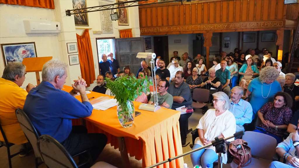 Στην Αγία Αικατερίνη και το Συνεδριακό Κέντρο του Πολιτιστικού Συλλόγου Αγίας Αικατε-ρίνης, βρέθηκε ο υποψήφιος δήμαρχος Ηρακλείου και επικεφαλής της παράταξης «Δικαίωμα στην Πόλη» Αλέξης Καλοκαιρινός.
