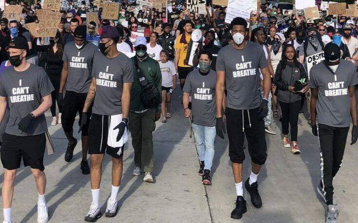 Γιάννης, Θανάσης, Άλεξ και Κώστας συμμετείχαν σε διαδήλωση μαζί με άλλους παίκτες των Μπακς, φορώντας μπλούζες που έγραφαν «I can’t breathe», τη φράση που έχει συνδεθεί με τη δολοφονία του Τζορτζ Φλόιντ.