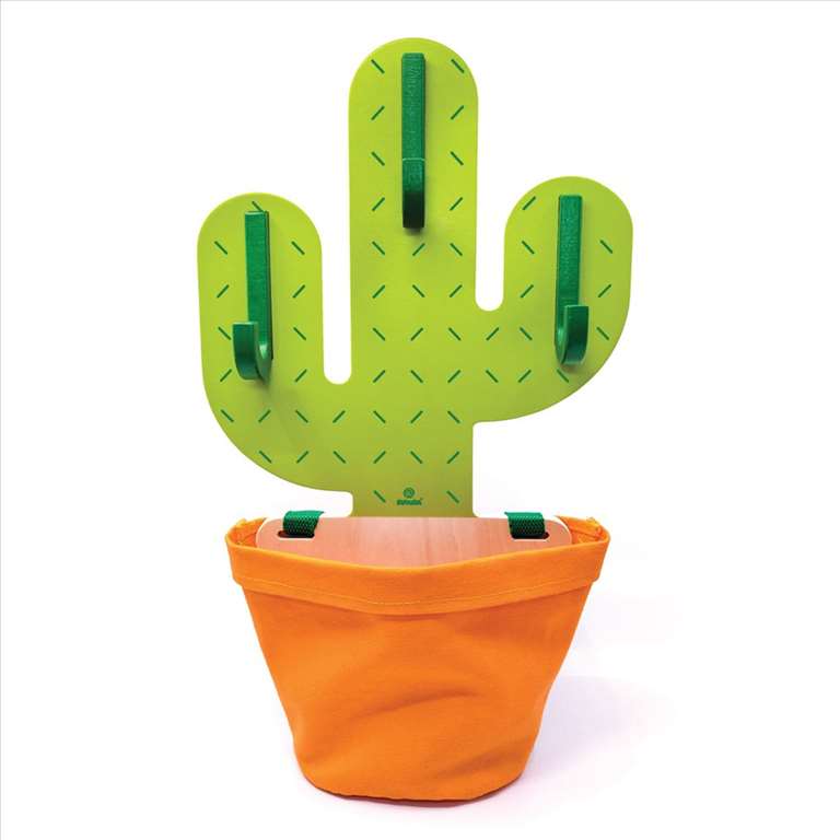 Ξύλινη κρεμάστρα σε σχέδιο κάκτος από κόντρα πλακέ και ξύλο οξιάς. Διαθέτει 3 άγκιστρα, που βιδώνονται εύκολα και παραμένουν σταθερά. Η συσκευασία περιλαμβάνει βίδες και ούπα για εύκολη τοποθέτηση στον τοίχο.
