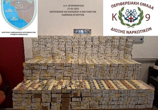 Τις βραδινές ώρες χθες, στελέχη της ομάδας Κ9, της Περιφερειακής Ομάδας Δίωξης Ναρκωτικών (Π.Ο.ΔΙ.Ν.) και του γραφείου Ασφάλειας του Κεντρικού Λιμεναρχείου Ηγουμενίτσας, προέβησαν στη σύλληψη ενός 62χρονου αλλοδαπού (υπήκοος Βουλγαρίας), για παράβαση του άρθρου 155 του Εθνικού Τελωνειακού Κώδικα (Ν. 2960/2001). Ειδικότερα, σε έλεγχο που διενεργήθηκε στην πύλη εισόδου του λιμένα εξωτερικού Ηγουμενίτσας σε φορτηγό (Φ/Γ) όχημα με οδηγό τον 62χρονο, εντοπίστηκε επιμελώς κρυμμένη ποσότητα λαθραίων τσιγάρων σε ειδικά διαμορφωμένη κρύπτη, εντός του χώρου του νόμιμου φορτίου στο επικαθήμενο. Συνολικά εντοπίστηκαν τέσσερις χιλιάδες εννιακόσια σαράντα (4.940) πακέτα λαθραίων τσιγάρων είκοσι τεμαχίων το καθένα, βουλγαρικής προέλευσης, τα οποία δεν έφεραν την ειδική ταινία φόρου κατανάλωσης, με σκοπό ο ανωτέρω να τα μεταφέρει παράνομα στο εξωτερικό. Από το Κεντρικό Λιμεναρχείο Ηγουμενίτσας που διενεργεί τη προανάκριση, κατασχέθηκε το Φ/Γ όχημα με το επικαθήμενο, καθώς και τα ανευρεθέντα τσιγάρα, ενώ το σύνολο των διαφυγόντων δασμών και φόρων ανέρχεται στο ποσό των είκοσι χιλιάδων εβδομήντα τεσσάρων ευρώ και είκοσι τεσσάρων λεπτών (20.074,24€).