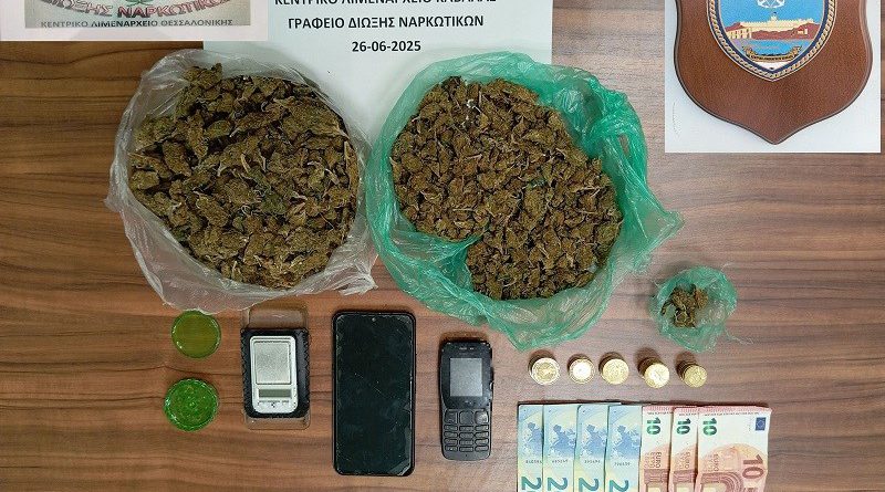 Συγκεκριμένα, κατόπιν αξιοποίησης πληροφοριών ότι ο 46χρονος διακινεί στην οικία του στη Θεσσαλονίκη ναρκωτικές ουσίες, εντοπίστηκε και ακινητοποιήθηκε ο 24χρονος έξω από την εν λόγω οικία και στον έλεγχο που διενεργήθηκε βρέθηκε στην κατοχή του μία νάιλον συσκευασία περιέχουσα ακατέργαστη κάνναβη, μικτού βάρους 2,3 γραμμαρίων. Ακολούθησε νόμιμη έρευνα στην οικία του 46χρονου, με την συνδρομή αστυνομικού σκύλου ανίχνευσης ναρκωτικών ουσιών του Κεντρικού Λιμεναρχείου Καβάλας Κ-9 «ΘΟΡ», στελεχών της Περιφερειακής Ομάδας Δίωξης Ναρκωτικών Κεντρικού Λιμεναρχείου Θεσσαλονίκης και παρουσία δικαστικού λειτουργού. Κατά τον έλεγχο βρέθηκαν και κατασχέθηκαν δύο νάιλον συσκευασίες με ακατέργαστη κάνναβη συνολικού μικτού βάρους 292 γραμμαρίων, μία ψηφιακή ηλεκτρονική ζυγαριά ακριβείας με υπολείμματα ακατέργαστης κάνναβης, ένας πλαστικός τρίφτης με υπολείμματα ακατέργαστης κάνναβης, το ποσό των 128 ευρώ και δύο κινητά τηλέφωνα.