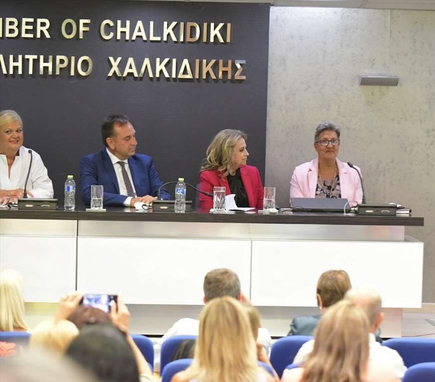 Στην εκδήλωση που διοργάνωσε το Επιμελητήριο Χαλκιδικής, με θέμα τη Γυναικεία Επιχειρηματικότητα απηύθυνε χαιρετισμό η υφυπουργός τουρισμού Έλενα Ράπτη. Η Έλενα Ράπτη κατά τον χαιρετισμό της αναφέρθηκε στις κυβερνητικές πρωτοβουλίες για την εναρμόνιση της προσωπικής και επαγγελματικής ζωής των γυναικών αλλά και στην ισότητα των φύλων ως θεμελιώδη αξία για την κοινωνική συνοχή, την ευημερία και την ποιότητα της Δημοκρατίας.