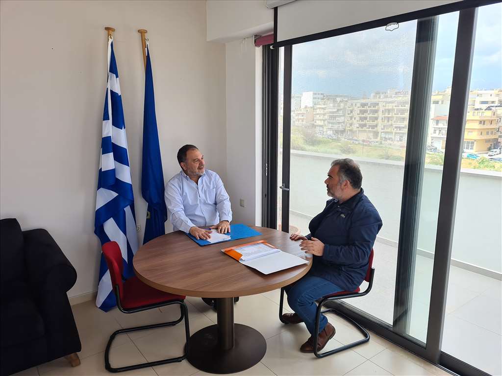 Με πρωτοβουλία του Προέδρου της ΠΕΔ Κρήτης κ. Γ. Κουράκη πραγματοποιήθηκε συνάντηση με τον Πρόεδρο της Ένωσης Αγροτικών Συνεταιρισμών Ηρακλείου κ. Στ. Γαβαλά στα γραφεία της ΠΕΔ.