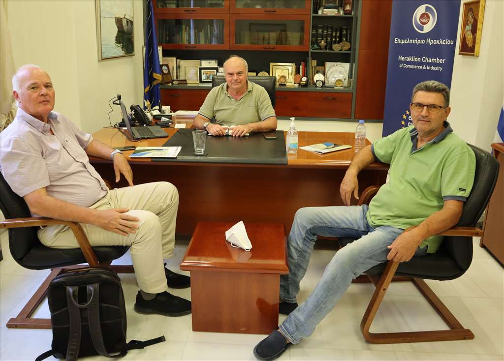 Εποικοδομητική συζήτηση για τα θέματα που απασχολούν τους επιχειρηματίες της Βιομηχανικής Περιοχής Ηρακλείου είχε ο Πρόεδρος του Επιμελητηρίου κ. Μανώλης Αλιφιεράκης με τον νεοεκλεγέντα Πρόεδρο του Συνδέσμου Επιχειρήσεων Βιομηχανικής Περιοχής Ηρακλείου (ΣΕΒΠΗ) κ. Κωνσταντίνο Χρηστάκο.
