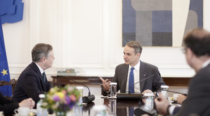 Ο Πρωθυπουργός Κυριάκος Μητσοτάκης συναντήθηκε το πρωί με τον Πρόεδρο του Eurogroup Paschal Donohoe, στο Μέγαρο Μαξίμου.