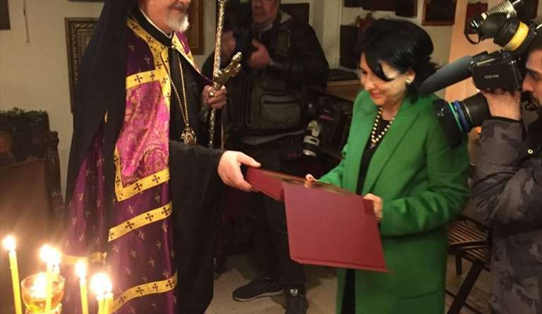 Προσέφερε στην Εξοχοτάτη κ. Πρόεδρο μία βυζαντινή εικόνα της Υπεραγίας Θεοτόκου με την ευχή πάντοτε να την προστατεύει και να την καθοδηγεί.