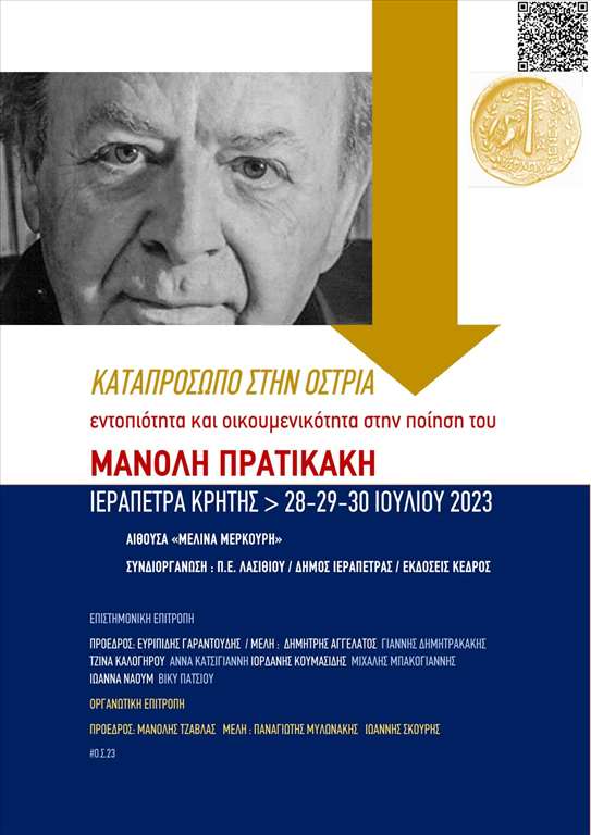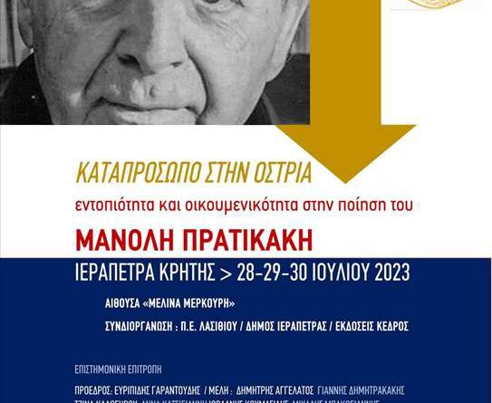 «Η σχεδόν ιδεαλιστική πίστη του Πρατικάκη στην ποίηση […] επουλώνει την πληγή της απουσίας οποιασδήποτε μεταφυσικής λύσης στο ανθρώπινο οντολογικό πρόβλημα» σημειώνει ο Ε. Γαραντούδης με αφορμή την έκδοση του βιβλίου Λιθοξόος. Πράγματι, από τις αρχές της δεκαετίας του 1970 μέχρι σήμερα, ο Μανόλης Πρατικάκης, εκδίδοντας ποιητικά, πεζογραφικά και δοκιμιακά βιβλία, συγκρότησε μια πυκνή, αναγνωρισμένη από την κριτική και το αναγνωστικό κοινό διακριτή παρουσία, η οποία ανταποκρίνεται στα κεφαλαιώδη ερωτήματα του μύχιου ανθρώπινου ψυχισμού. Έτσι, τα μέλη της Επιστημονικής και της Οργανωτικής Επιτροπήςβρίσκονται στην ευχάριστη θέση να σας ανακοινώσουν τη διενέργεια και το πρόγραμμα του Επιστημονικού Συνεδρίου με τίτλο «Καταπρόσωπο στην Όστρια: εντοπιότητα και οικουμενικότητα στην ποίηση του Μανόλη Πρατικάκη».