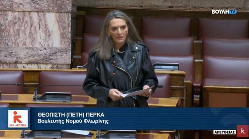 Να δεσμευτεί για τη διενέργεια ευρείας διαβούλευσης με την κοινωνία και τα υπόλοιπα κοινοβουλευτικά κόμματα σχετικά με το σχεδιασμό του Κοινωνικού Ταμείου για το Κλίμα ζήτησε από την κυβέρνηση η Βουλεύτρια Φλώρινας και Γραμματέας της ΚΟ της Νέας Αριστεράς, Πέτη Πέρκα, κατά τη συζήτηση σχετικής επίκαιρης ερώτησης.