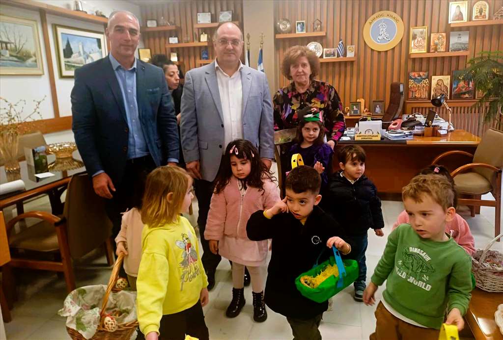 Το γραφείο του κατακλύστηκε από καλαντιστές του Α’ Παιδικού Σταθμού του Δήμου Κιλκίς, που του έψαλαν τα κάλαντα του Λαζάρου, συγχρονιζόμενα με το μουσικό παράγγελμα της εκπαιδευτικού τους Βούλας Παναγιωτίδου.