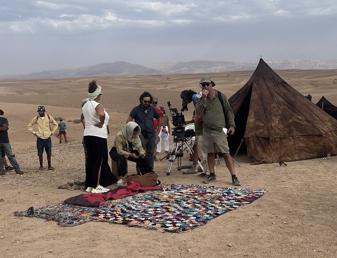 Προορισμός της ομάδας του «ΤΙΜΩΡΟΥ» είναι η έρημος του Μαρακές αλλά πριν την προσεγγίσει, θα περάσει από μικρούς οικισμούς με ροδιές, συκιές και χαμηλή βλάστηση, μέχρι να πάρει το χωμάτινο δρόμο, σε μια διαδρομή σε ανώμαλο έδαφος, με στροφές και δύσκολες ανηφόρες. Τα οχήματα κλυδωνίζονταν δεξιά κι αριστερά, πάνω – κάτω. Το… καραβάνι μετά από αρκετή ώρα διαδρομής, στάθμευσε σε συγκεκριμένο σημείο. Αυτοκίνητα, μίνι βαν, φορτηγά με εξοπλισμό, σκηνές, τέντες, καμηλιέρηδες με τις καμήλες τους, πολύχρωμες πινελιές στο "αρειανό" τοπίο. Η αχανής αυτοκρατορία της ερήμου, οι ατελείωτοι αμμώδεις λόφοι, η επανάληψη του ίδιου οπτικού μοτίβου, η γοητεία και η ηρεμία. Μέσα σε αυτό το περιβάλλον τα "action" και "cut" ακούστηκαν πολλές φορές. Στην έρημο ο ήχος αντηχεί διαφορετικά και ταξιδεύει αλλιώς.
