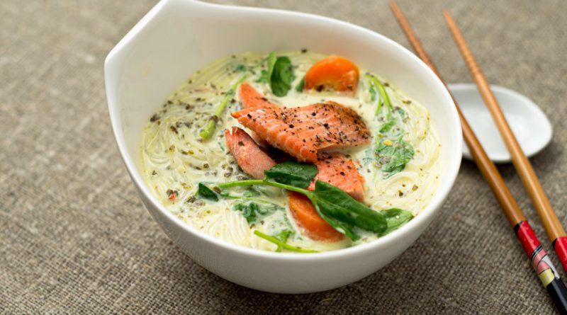 Ταϊλανδέζικη σούπα με νουντλς και σολομό