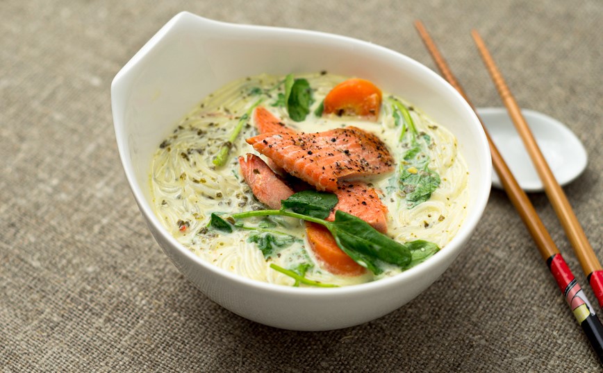 Ταϊλανδέζικη σούπα με νουντλς και σολομό