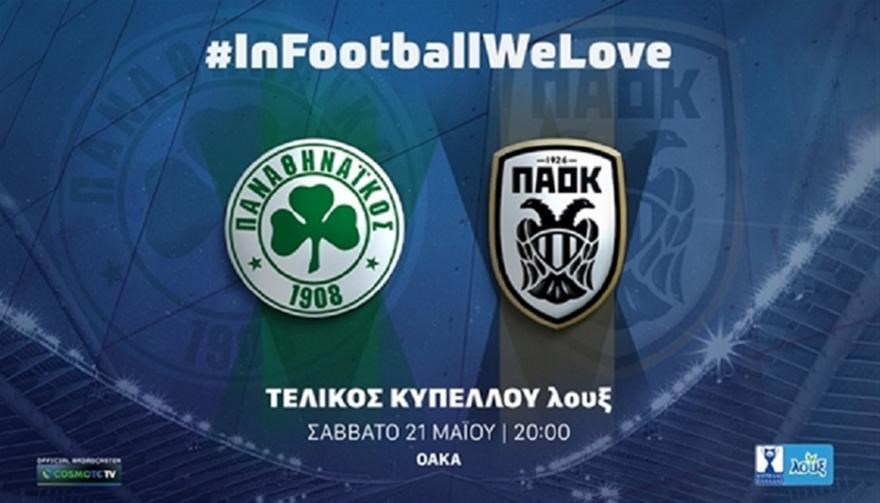 Με ένα φαντασμαγορικό τελετουργικό και με κεντρικό σύνθημα InFootballWeLove (Το ποδόσφαιρο που αγαπάμε), οι φίλοι του ποδοσφαίρου θα παρακολουθήσουν το Σάββατο 21 Μαΐου στο ΟΑΚΑ έναν τελικό όπως πρέπει να είναι: Μια γιορτή γεμάτη κόσμο!