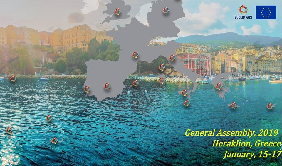 Η Περιφέρεια Κρήτης διοργανώνει την Τακτική Συνέλευση του Ευρωπαϊκού Έργου H2020 SOCLIMPACT στην Κρήτη (15-17/1/2019), για την επίδραση της Κλιματικής Αλλαγής στην Γαλάζια Οικονομία (DownScaling Climate imPACTs and decarbonisation pathways in EU islands, and enhancing socioeconomic and nonmarket evaluation of Climate Change for Europe, for 2050 and beyond-http://soclimpact.org).