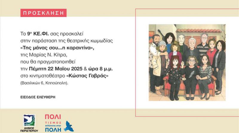 Θεατρική παράσταση «Της μάνας σου… η καραντίνα» από το 9ο ΚΕ.ΦΙ. Δήμου Περιστερίου