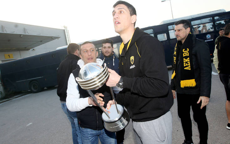 Η ΑΕΚ με το τρόπαιο του Διηπειρωτικού στα χέρια προσγειώθηκε στο «Ελ. Βενιζέλος» παρουσία 100 οπαδών της.