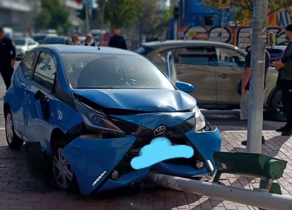 Θεσσαλονίκη: Αυτοκίνητο έπεσε σε φανάρι μετά από σύγκρουση με άλλο ΙΧ