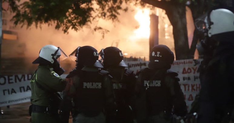 Σε πεδίο μάχης μετατράπηκε για σχεδόν δύο ώρες Αριστοτέλειο Πανεπιστήμιο στη Θεσσαλονίκη, καθώς μετά το τέλος των πορειών για την επέτειο του Πολυτεχνείου, στην πολυτεχνική σχολή του ΑΠΘ υπήρξαν συγκρούσεις μεταξύ κουκουλοφόρων που έσπαγαν μάρμαρα με βαριοπούλες για να τα κάνουν «πολεμοφόδια» και αστυνομικών που απαντούσαν με τη χρήση χημικών. Ωστόσο η ένταση μεταφέρθηκε και σε κλειστούς χώρους και προκαλεί σοκ ένα βίντεο που δημοσιεύθηκε στο Twitter και δείχνει να αστυνομικό να πετά, πιθανότατα δακρυγόνο, την ώρα που ακούγονται συνάδελφοί του να προσπαθούν να τον αποτρέψουν.