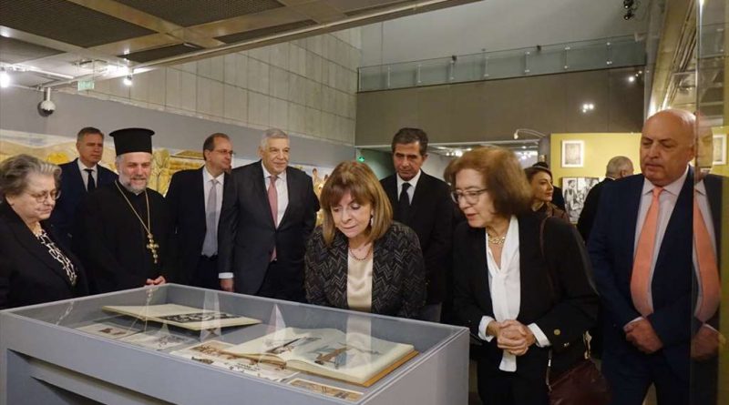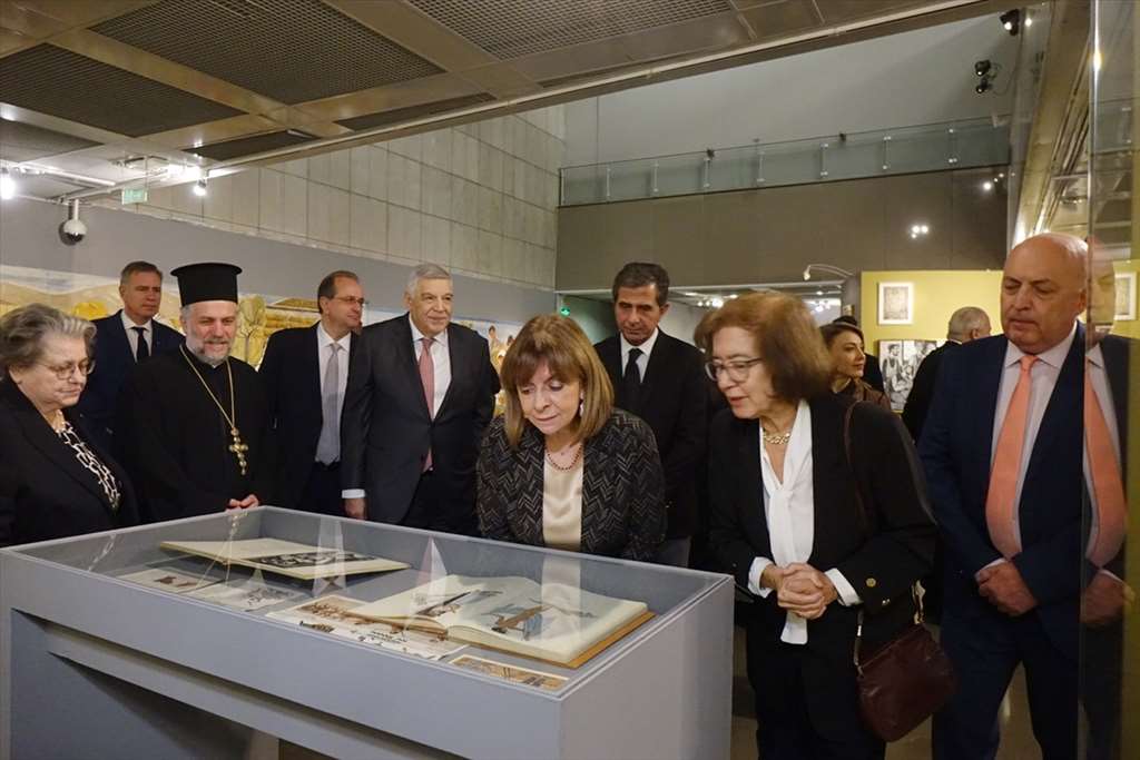 Μετά τους χαιρετισμούς στο αμφιθέατρο του Τελλογλείου ακολούθησε περιήγηση στην έκθεση στην Πρόεδρο της Δημοκρατίας και τους επισκέπτες από την Γενική Διευθύντρια του Τελλογλείου Ιδρύματος.
