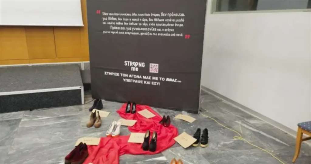 Tα ζευγάρια από γυναικεία παπούτσια στο πάτωμα με τα ονόματα των αδικοχαμένων κοριτσιών φορτίζουν με έντονα συναισθήματα την ατμόσφαιρα στην αίθουσα «Μανώλης Αναγνωστάκης» του δημαρχείου της Θεσσαλονίκης. Σε εκδήλωση που έγινε στη μνήμη της Ντόρας Ζαχαριά και όλων των γυναικών που έπεσαν θύματα δολοφονίας και με αφορμή την επικείμενη Διεθνή Ημέρα για την Εξάλειψη της Βίας κατά των Γυναικών, τα αθλητικά, τα μοκασίνια, τα μποτάκια, διαφορετικά παπούτσια, διαφορετικές γυναίκες, το ένα δίπλα στο άλλο ήταν ένας συμβολισμός για τις γυναίκες που χάθηκαν από τη μια στιγμή στην άλλη από τα χέρια των δολοφόνων πρώην και νυν συντρόφων τους.