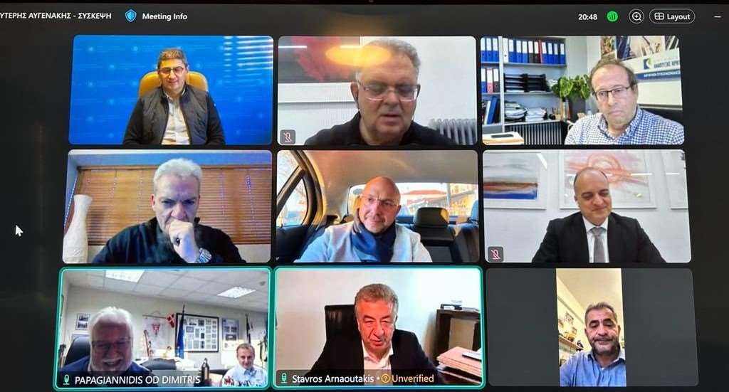 Τηλεδιάσκεψη Αυγενάκη – Αρναουτάκη-Καλοκαιρινού για τα εγγειοβελτιωτικά έργα της πόλης του Ηρακλείου και τον Ενιαίο Φορέα Διαχείρισης Υδάτων Κρήτης