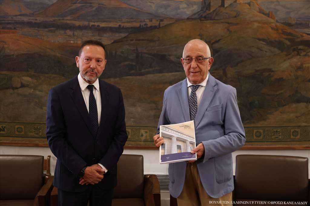 Στις αισιόδοξες προοπτικές ανάπτυξης της ελληνικής οικονομίας παρά τις δυσμενείς παγκόσμιες γεωπολιτικές και οικονομικές εξελίξεις, συμφώνησαν ο Πρόεδρος της Βουλής των Ελλήνων, κ. Νικήτας Κακλαμάνης και ο Διοικητής της Τραπέζης της Ελλάδος, κ. Ιωάννης Στουρνάρας, ο οποίος του επέδωσε σήμερα την Έκθεση για τη Νομισματική Πολιτική 2024-2025.