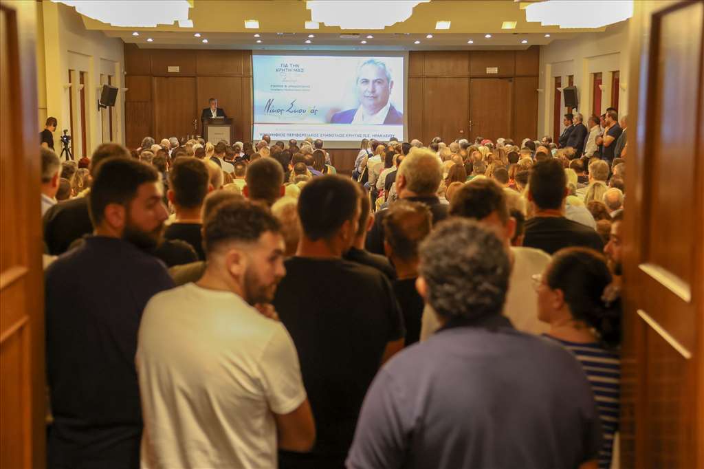 Το αδιαχώρητο δημιουργήθηκε στο ξενοδοχείο Ατλαντίς, στην κεντρική προεκλογική συγκέντρωση και ομιλία του Αντιπεριφερειάρχη Τεχνικών Έργων της Περιφέρειας Κρήτης και εκ νέου υποψήφιου Περιφερειακού Συμβούλου στην Π.Ε. Ηρακλείου με τον Σταύρο Αρναουτάκη και τον συνδυασμό «Για την Κρήτη μας συνεχίζουμε», Νίκου Σκουλά.