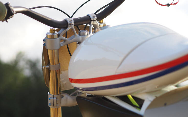 Όλα ξεκίνησαν από ένα KTM 250GS της δεκαετίας του 1980, το οποίο δέχτηκε το άγγιγμα του ανθρακονήματος, αλλά και της τρισδιάστατης εκτύπωσης. Ό,τι δεν είναι ανθρακόνημα, είναι 3D printed τιτάνιο.