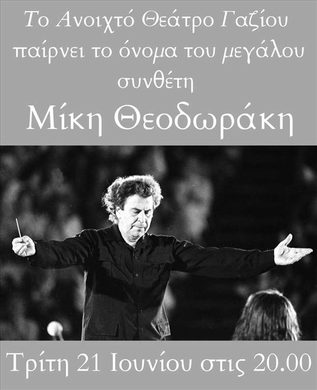 Το όνομα του Μίκη Θεοδωράκη στο δημοτικό θέατρο Γαζίου