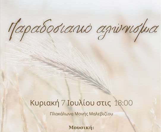 Η εκδήλωση θα πραγματοποιηθεί στη θέση Πλακάλωνα στη Μονή Μαλεβιζίου την Κυριακή στις 18.00 και η είσοδος για το κοινό είναι ελεύθερη.