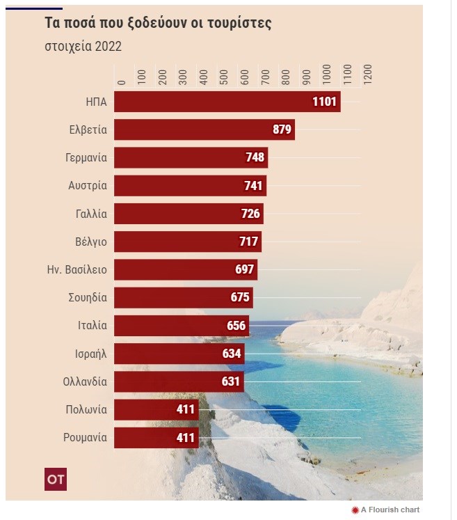 Οι Αμερικάνοι ξοδεύουν τα περισσότερα ανά επισκέπτη στη χώρα μας, οι Γερμανοί είναι πιο συντηρητικοί στις ταξιδιωτικές τους δαπάνες από άλλους Ευρωπαίους σε περιόδους κρίσεων, ενώ οι Βρετανοί δεν «καταλαβαίνουν» από πληθωρισμό και αναμένεται να αποτελέσουν τον πρωταγωνιστή για το 2023, στη χώρα μας.