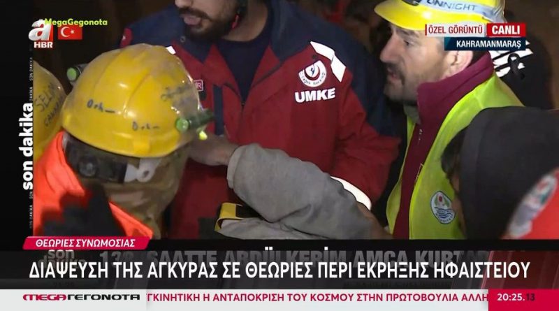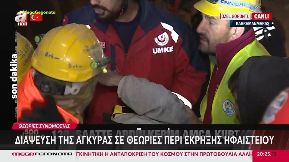 Ο άνδρας διασώθηκε κάτω από τόνους χαλασμάτων στο Καχραμανμάρας, ενώ, όπως φαίνεται στις εικόνες του απεγκλωβισμού του που μεταδόθηκαν σε ζωντανή σύνδεση, ήταν καλά στην υγεία του, χαμογελαστός.