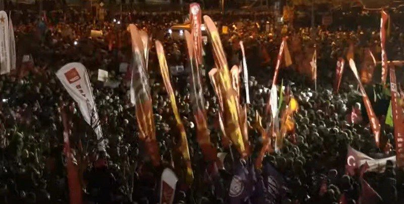 Στον απόηχο της μεγάλης χθεσινής συγκέντρωσης έξω από το Δημαρχείο Κωνσταντινούπολης, άλλο ένα μεγάλο συλλαλητήριο πραγματοποιείται σήμερα Πέμπτη (20/3), με τη συμμετοχή χιλιάδων κόσμου, φοιτητών και μαθητών. Οι πολίτες της Κωνσταντινούπουλης με συνθήματα αλλά και ομιλίες δηλώνουν την στήριξη τους προς τον Εκρέμ Ιμάμογλου.