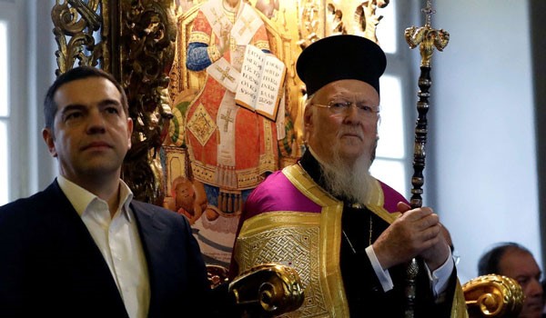 Ανέφερε ότι στο πλευρό του Οικουμενικού Πατριάρχη Βαρθολομαίου είναι ο πρωθυπουργός της Ελλάδας Αλέξης Τσίπρας, «πολιτικός άνδρας χαρακτηριζόμενος για το θάρρος του να λαμβάνει αποφάσεις, για την ευελιξία του στην επίλυση χρόνιων προβλημάτων και για τον δυναμισμό του στην εφαρμογή δύσκολων αποφάσεων.
