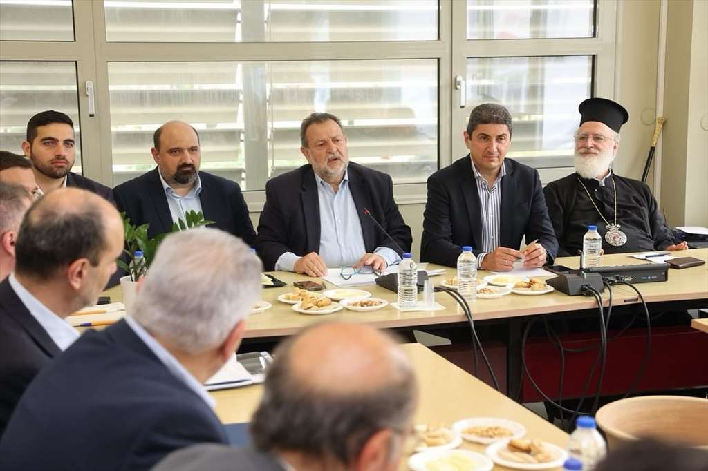 Τα αιτήματα του Δημάρχου Μινώα Πεδιάδας Βασίλη Κεγκέρογλου στη σύσκεψη με τον Υπουργό Αγροτικής Ανάπτυξης και Τροφίμων, Λευτέρη Αυγενάκη και τον Υφυπουργό Κλιματικής Κρίσης και Πολιτικής Προστασίας, Χρήστο Τριαντόπουλο στη συνάντηση που είχαν στο Δημοτικό Κατάστημα Αρκαλοχωρίου, ο Υπουργός Αγροτικής Ανάπτυξης και Τροφίμων, Λευτέρης Αυγενάκης και ο Υφυπουργός Κλιματικής Κρίσης και Πολιτικής Προστασίας, Χρήστος Τριαντόπουλος, παρουσία του ΓΓ του ΥΠΑΑΤ, Γιώργου Στρατάκου, του ΓΓ Αποκατάστασης Φυσικών Καταστροφών και Κρατικής Αρωγής, Πέτρου Καμπούρη και του Ειδικού Γραμματέα Πόρων ΕΣΠΑ Γιώργου Ζερβού. Στη συνάντηση παρευρέθηκε επίσης και ο Μητροπολίτης Αρκαλοχωρίου, Καστελλίου και Βιάννου κ.κ. Ανδρέας και στελέχη της Δημοτικής Αρχής.