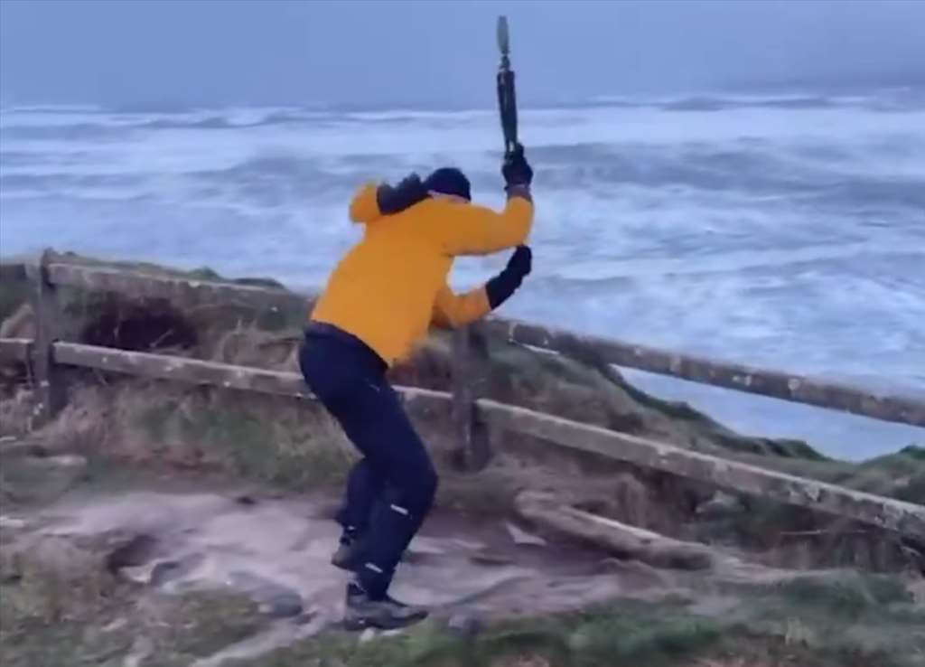 Ένα μέλος της μετεωρολογικής εταιρείας Weather & Radar αντιμετώπισε έντονες δυσκολίες κατά τη διάρκεια της καταιγίδας Eowyn την Παρασκευή το πρωί, καθώς προσπαθούσε να συλλέξει δεδομένα για την ταχύτητα του ανέμου στην ακτή Co. Clare της Ιρλανδίας. Ο μετεωρολόγος, που περπατούσε κόντρα στον ισχυρό άνεμο, κατέγραψε ριπές ταχύτητας που έφτασαν τα 190 χλμ./ώρα. Η εταιρεία ανέφερε ότι ήταν μια πραγματική «μάχη» για να ολοκληρωθεί η μέτρηση, σύμφωνα με την λεζάντα του βίντεο που δημοσιεύθηκε στα μέσα κοινωνικής δικτύωσης.