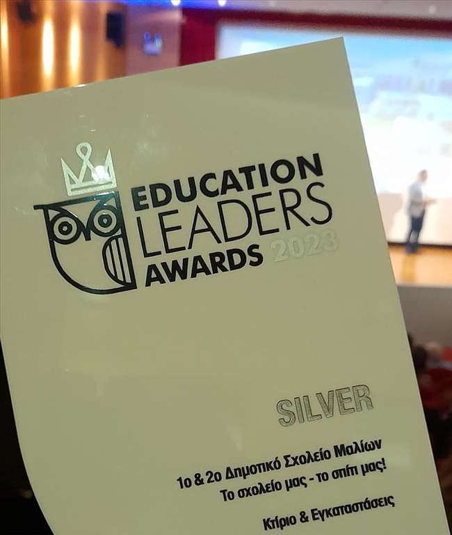 Σημαντική διάκριση για το 1ο και 2ο Δημοτικό Σχολείο Μαλίων που απέσπασαν το ασημένιο βραβείο στα Education Leaders Awards 2023 στην κατηγορία «Κτίριο και εγκαταστάσεις».
