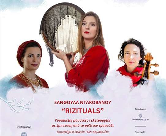 Το ριζίτικο τραγούδι και η γυναίκα πρωταγωνιστούν στη μουσική παράσταση RIZITUALS της Ξανθούλας Ντακοβάνου, η οποία στηρίζεται στο ομότιτλο έργο, το οποίο δημιουργήθηκε υπό την αιγίδα του Υπουργείου Πολιτισμού – Άυλη Πολιτιστική Κληρονομιά και θα παρουσιαστεί στο Ενετικό Λιμάνι Ηρακλείου την Παρασκευή 27 Σεπτεμβρίου, στο πλαίσιο της ενότητας «Γυναίκες» του Φεστιβάλ Κρήτης 2024.