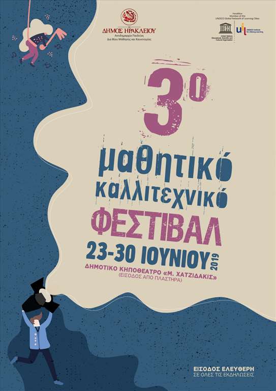 Ξεκινά την Κυριακή 23 Ιουνίου 2019 το «3ο Μαθητικό Καλλιτεχνικό Φεστιβάλ» που διοργανώνει η Αντιδημαρχία Παιδείας, Διά Βίου Μάθησης και Καινοτομίας του Δήμου Ηρακλείου. Το Φεστιβάλ που έχει διάρκεια μίας εβδομάδας και θα ολοκληρωθεί την Κυριακή 30 Ιουνίου, διοργανώνεται σε συνεργασία με την Διεύθυνση Δευτεροβάθμιας Εκπαίδευσης Ηρακλείου.