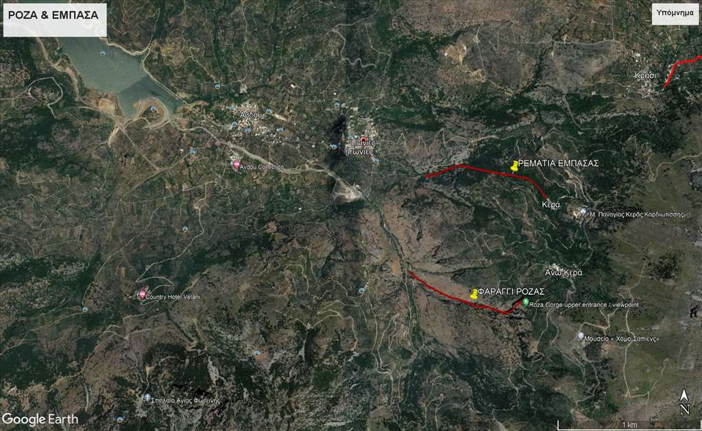 Ο συνδυασμός της πεζοπορικής διαδρομής στο φαράγγι της Ρόζας με τη διάσχιση της γειτονικής ρεματιάς της Εμπασάς, προσφέρει τη δυνατότητα πραγματοποίησης μιας πολύ όμορφης κυκλικής διαδρομής, συνολικής διάρκειας περίπου πέντε (5) ωρών. Ο επισκέπτης μπορεί επίσης να συνδυάσει την πεζοπορία, με επίσκεψη στα χωριά της περιοχής (Αβδού, Γωνιές, Κερά, Κράσι) και την τεχνητή λίμνη του φράγματος Αποσελέμη.