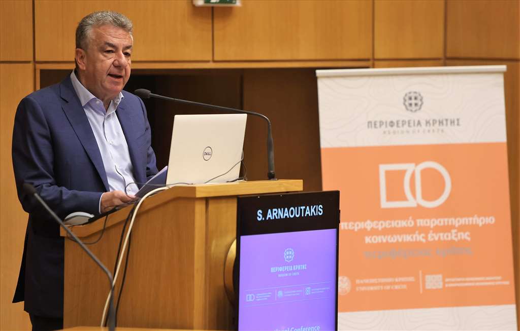«Είμαστε εδώ για να μιλήσουμε για αυτούς που η φωνή τους δεν ακούγεται», επεσήμανε ο Περιφερειάρχης Κρήτης Σταύρος Αρναουτάκης, από το βήμα του διεθνούς συνεδρίου με τίτλο, «Αντιμετωπίζοντας τη Φτώχεια και την Αποστέρηση. Πολιτικές Χωρικού Κοινωνικού Σχεδιασμού για τη Βιώσιμη Ανάπτυξη», που οργάνωσε η Περιφέρεια Κρήτης στο Επιμελητήριο Ηρακλείου.