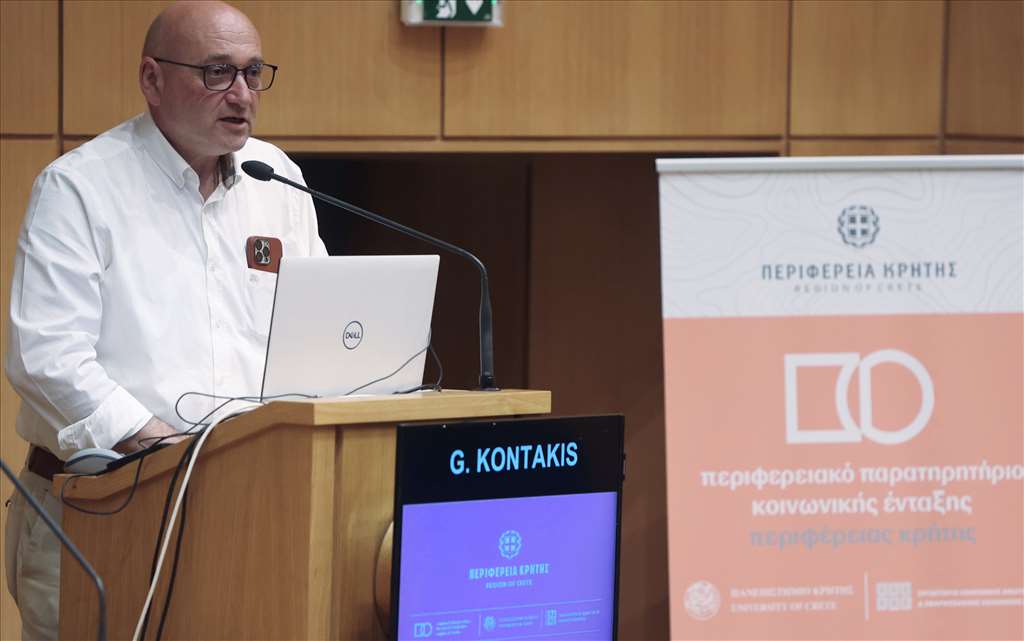 Χαιρετίζοντας το Συνέδριο ο Πρύτανης του Πανεπιστημίου Κρήτης Γιώργος Κοντάκης σημείωσε πως «στο πλαίσιο της εξαιρετικής μακροχρόνιας συνεργασίας μεταξύ της Περιφέρειας Κρήτης και του Πανεπιστημίου Κρήτης», έχουν αναπτυχθεί από το πανεπιστήμιο Κρήτης δύο πολύ επιτυχημένες Δομές, το Παρατηρητήριο Κοινωνικής Ένταξης και ο Περιφερειακός Μηχανισμός Παρακολούθησης της Αγοράς Εργασίας. «Οι παραπάνω δομές με ερευνητικά εδραιωμένες προτάσεις εστιάζουν σε σειρά ζητημάτων από την υλική αποστέρηση — φτώχεια, στην εργατική επισφάλεια – ανεργία. Σε συνδυασμό μάλιστα με νέα εγχειρήματα όπως το εργαστήριο «Υγεία και Κοινωνία» αλλά και σειρά άλλων ερευνητικών δραστηριοτήτων, το Πανεπιστήμιο Κρήτης συμβάλλει ουσιαστικά στην κοινωνική διάσταση της περιφερειακής ανάπτυξης», υπογράμμισε ο κ. Κοντάκης.
