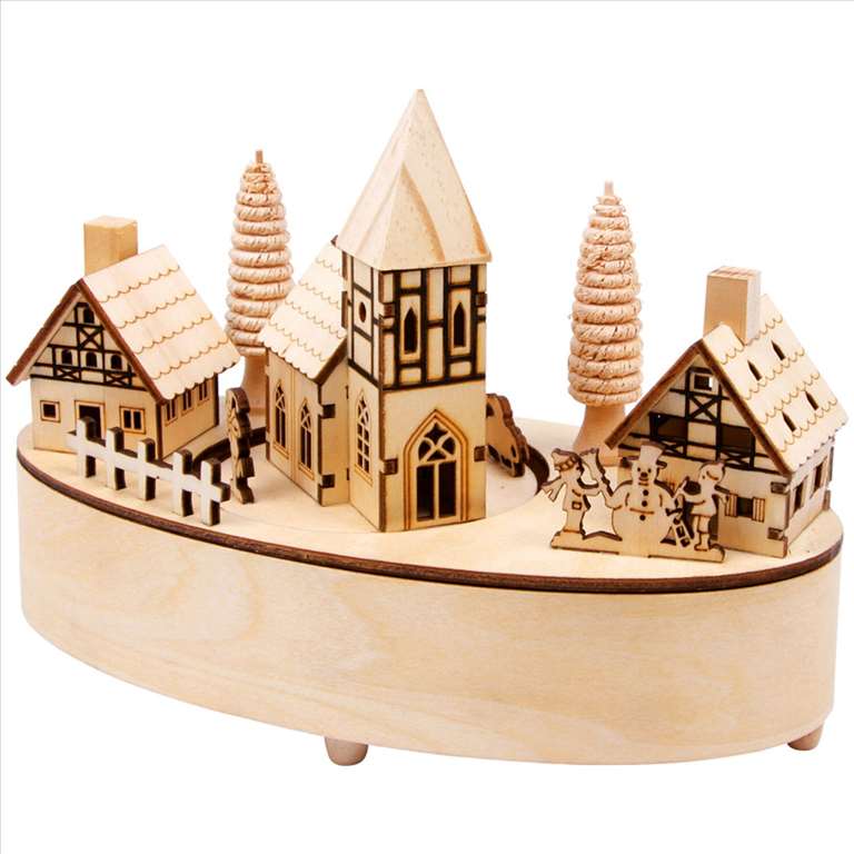 Ξύλινο μουσικό κουτί με φως, μικρό χωριό